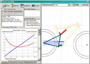 You can watch the movement of each pivot and things so important as the forces aplied to the rear shock in order to estimate the progressive response of the suspension or the variations in the chain lenght what gives an idea of the interference betwen pedaling and suspension.