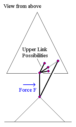 Under braking, a force F is induced from the rear wheel through the brake to the rear link. Neglecting the mass of the upper link, which is very small, we see that this force will in turn be transmitted to the upper link and ultimately to the main triangle, directly down the axis of the upper link.